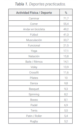 Esta práctica es superada solamente por la caminata que en 2021 fue seleccionada en un 65,4% mientras que en 2023 ascendió al 71,7% .